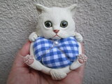 仰向けポーズが可愛い猫のピンクッション(針山)です。