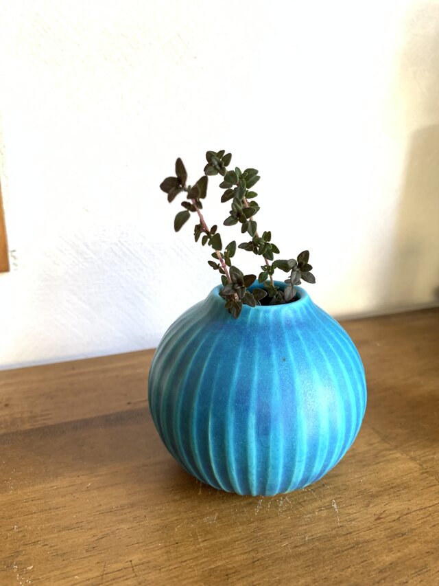 ターコイズブルーのきれいなお色味です。質感はマットです。