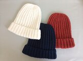 日本製の上質なコットンリネン糸でゆったりざっくりのニット帽を編んでみました。