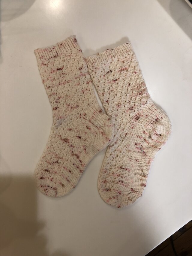 まるで桜の花びらを散らしたような春靴下ができました!
