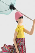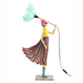風に吹かれて、スカートがなびき、カラフルな傘がひっくり返ってしまったユーモアあふれるおしゃれなリトルガールランプ♪