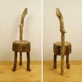 かわいい丸太の分厚い輪切りに枝流木の足を3本付けた、椅子形のおしゃれなミニ置台、花台です。