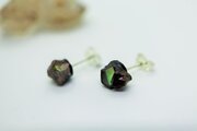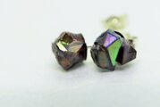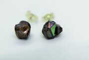 レインボーガーネットの小さな単結晶をスタッドピアスにしました。