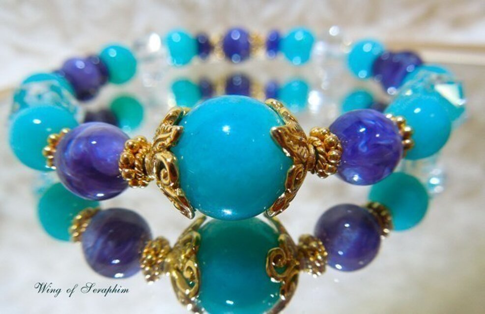 (SOLD)アマゾナイト&チャロアイト☆ブレス(24KGF)