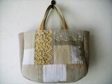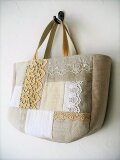 アンティークレースをのせたパッチワークトートバッグ