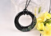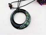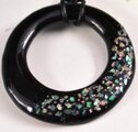 パート・ド・ヴェルの技法で作成した大き目の丸いリングに、螺鈿のフレークでデザイン