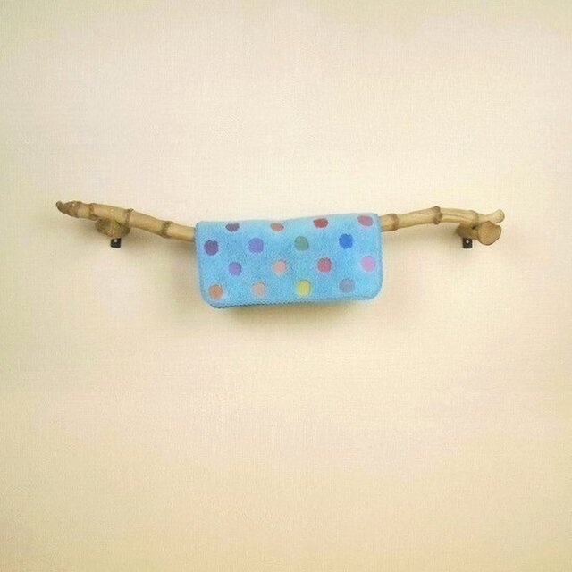流木となった竹を使用した、めずらしいタオル掛けです。
