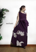 繊細で美しく、品のある紫紺色 (しこんいろ)に描かれた百合の花々が奏で長れる、素敵なアンティーク着物をほどいて、画像デザインのフォーマルワンピースをお作りいたします。