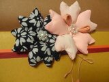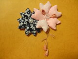 生地複数使いの髪飾りを