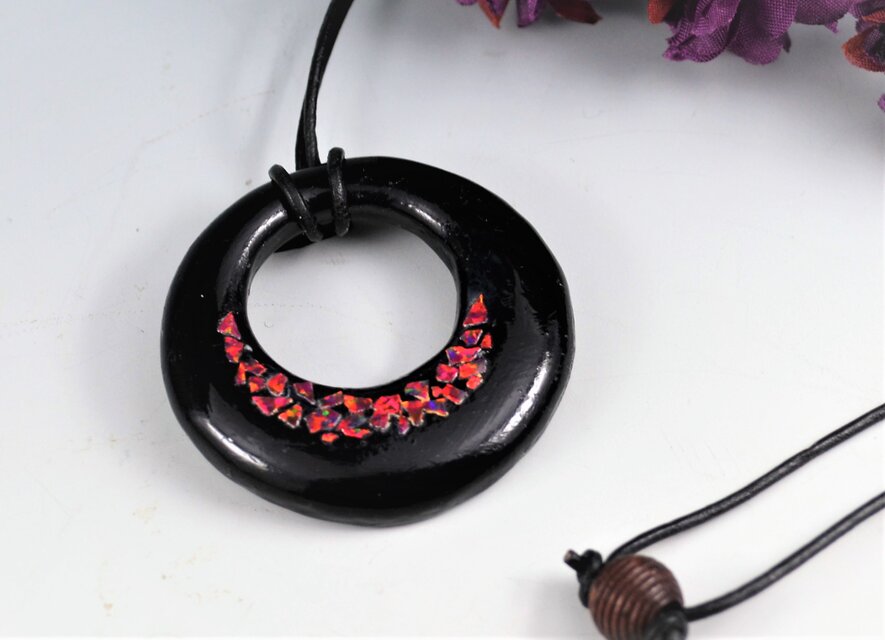 京都オパールの(からくれない)を使って三日月の形にデザインをしたペンダントトップ。