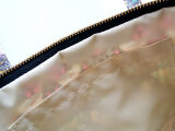 地の色がダークブラウン、お花や鳥たちの色が、ミントグリーン、ピンク、ライトグレー、マスタード、ホワイトなどです。