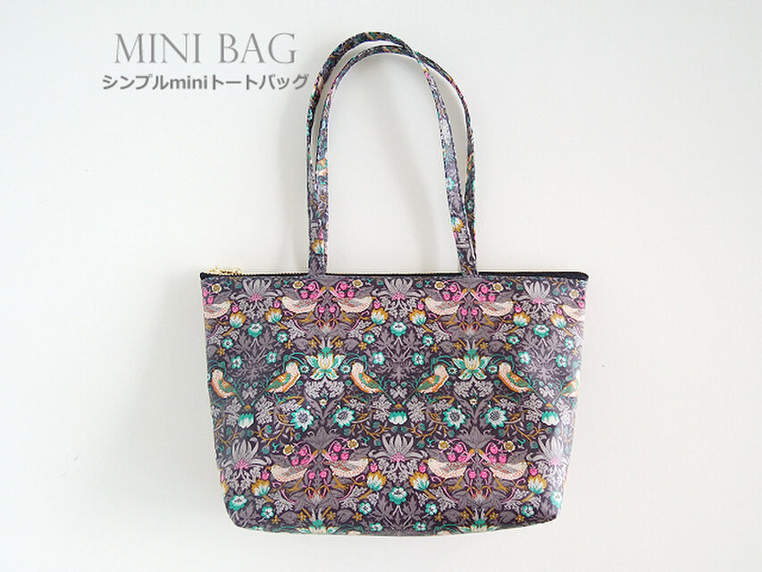 リバティの人気生地、Strawbery Thief ストロベリーシーフ(ブラウン)のラミネート生地(つや無)でミニトートバッグを作りました。