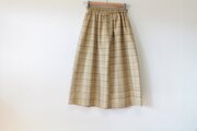 ・クリーム(黄土色)地にこげ茶と山吹色等のチェック柄 シルク 100%