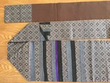 正絹大島紬、男性用長着、男袴……の和布をパッチワークして名古屋帯を作りました。