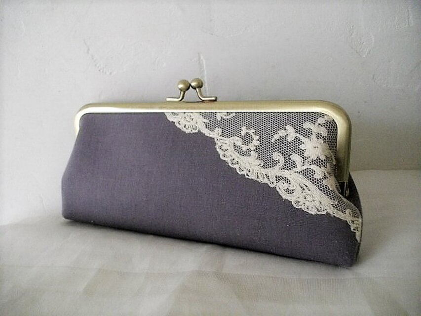 アンティークチュールレースをのせたがま口ペンケース