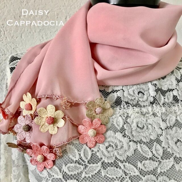 【オータムセール】刺繍のお花つき シフォンストール(2辺)「デイジー」ピンクミックス