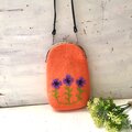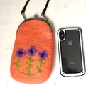羊毛刺繍のフェルトスマホポシェット(サーモン)
