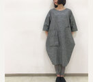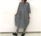 上質ソフトリネン、おとなのゆったりバルーンワンピース、グレーミックス