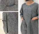 最上質のソフトリネンで肌さわりの良いバルーンワンピースを仕立てました。程よい布厚で張りのある生地を使っています、立体的な2段ポケットと切替部分に隠れポケットも付けました。
