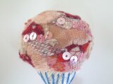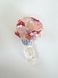 材料:綿のハギレ布・フェルト・わた・刺繍糸・ブローチピン・スパンコール