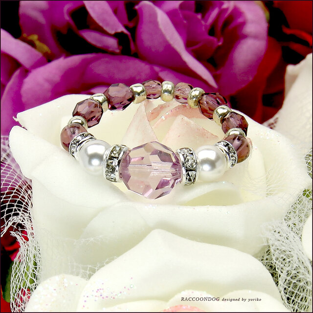 すみれ色の心模様【スワロフスキー&クリスタルロンデル ビーズリング】《ビーズアクセサリー》