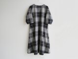播州織コットン*ゆったりシルエットのシンプルなフレアワンピース(黒×グレー・チェック)