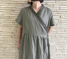 ソフト加工を施したリネンなのでざらざら感はなく、とても肌さわりの良い質感です。リネン特有のてれ感、落ち感、とろみ感があり、上品な光沢のあるカシュクールでおとなっぽい仕上がりになりました。
