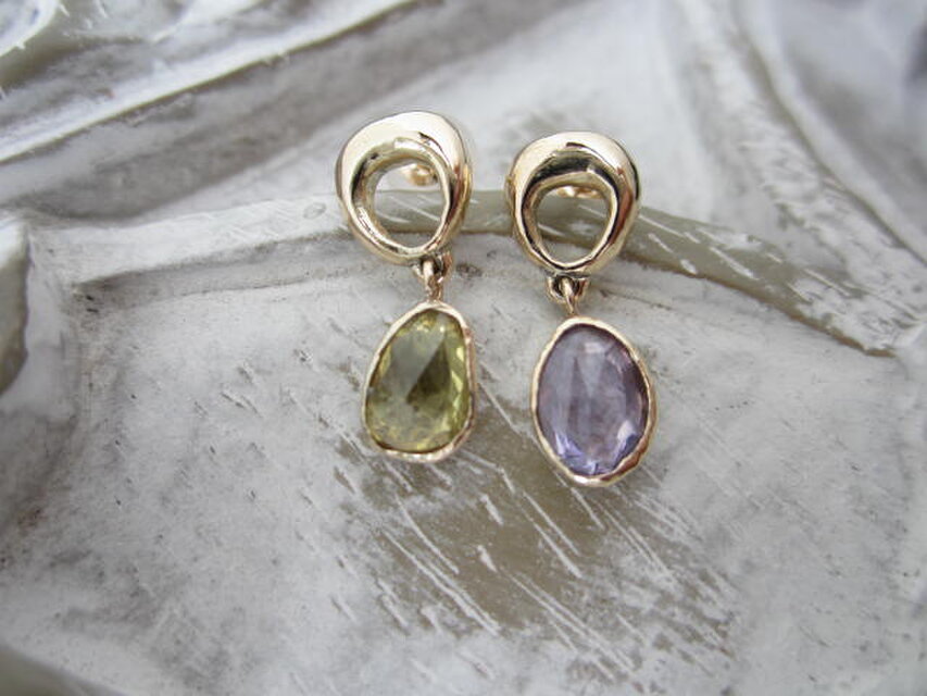 素材:K10イエローゴールド、サファイア(パープル・イエロー/計1.00ct)、シリコン(キャッチ部分)