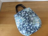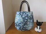 リバティ ローズエレン ブルー系 タナローンでたまご型トートバッグを作りました。