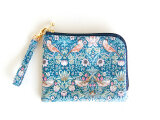 リバティの人気生地、Strawbery Thief ストロベリーシーフ(ブルーグリーン)のラミネート生地(つや無)でL字ファスナーのティッシュポーチを作りました。