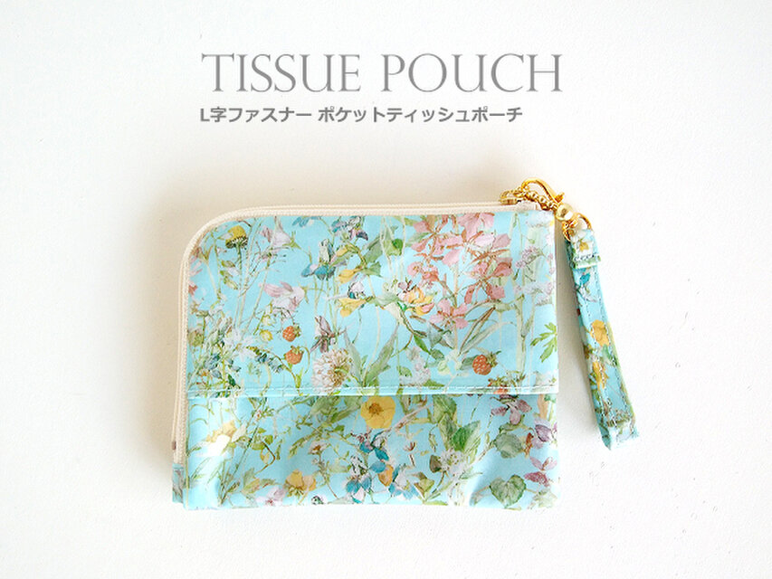 【試作品】リバティ L字 ティッシュポーチ ワイルドフラワーズ 水色