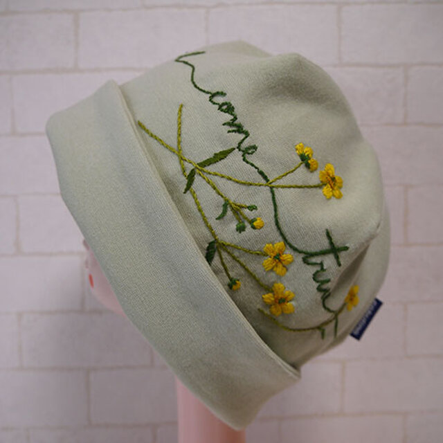 コットン素材スパンフライスニット生地で作ったニット帽(キンポウゲ)