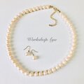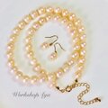 A~AAランク・クリームホワイト淡水パールのネックレスと耳飾り