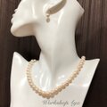 ラウンド型のA~AAランクの淡水パール(本真珠)を使用して、プリンセスタイプのネックレスと耳飾りを仕立てました。