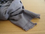 ゆるく撚りをかけたスラブ糸で織られた生地なので、表面の凹凸、程よい厚み、ふんわり感がやわらかく気持ちのいいストールです。