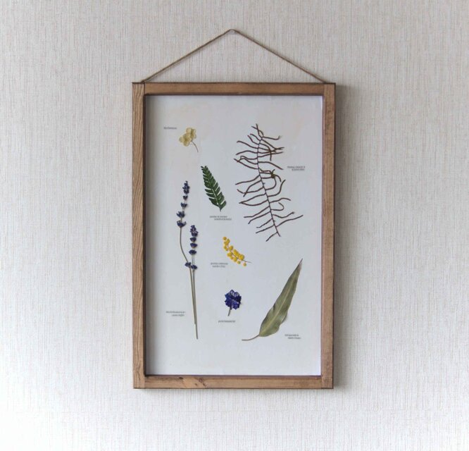 アンティーク調に仕上げた自家製フレームに色褪せたドライフラワーを貼り付けました。
