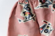 ・スモーキーピンクのような淡ピンクのような色地に幾何学模様 銘仙着物 シルク100%