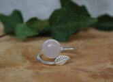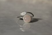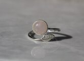 ローズクォーツのカボッションを、シルバーコーティングのリーフ柄の土台にセットしました。