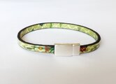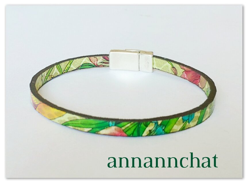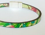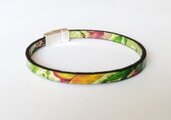 ヨーロッパ製の ボタニカルなデザイン(黄緑 緑 赤)の 5mm幅のコード で素敵なブレスレットを作りました。
