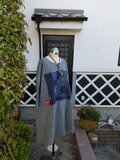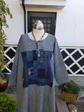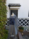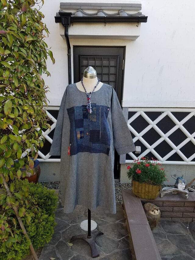 綿の縞にBoroを貼り付けてワンピースを作りました。