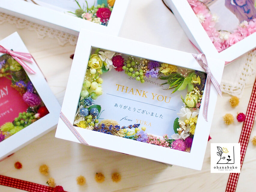 《名前入り/写真入り/個別メッセージ付き》プリザーブドフラワーのフォトフレーム◎フラワーボックス