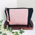 ピンクの絞りの着物をリメイクし、華やかな大きめの1点物のポーチです。