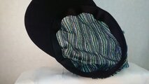 サイドベルトとブリムは綾織の黒無地の綿を使用。