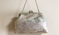 古布の状態の良いところ・柄のきれいなところをとって、がまぐちバッグをつくってみました。