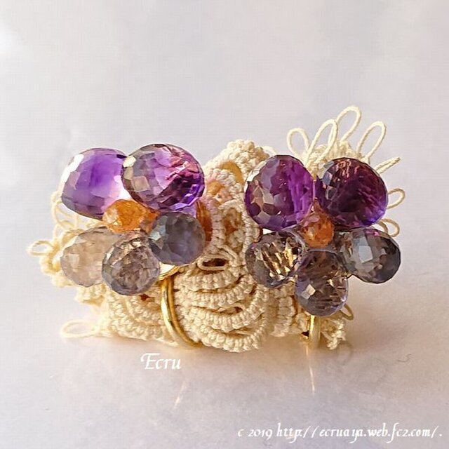 素材:宝石質アイオライトAAA ドロップブリオレットカット、宝石質アメジストAAA オニオンブリオレットカット、宝石質マンダリンガーネットAAA ドロップブリオレットカット、その他全て14kgf