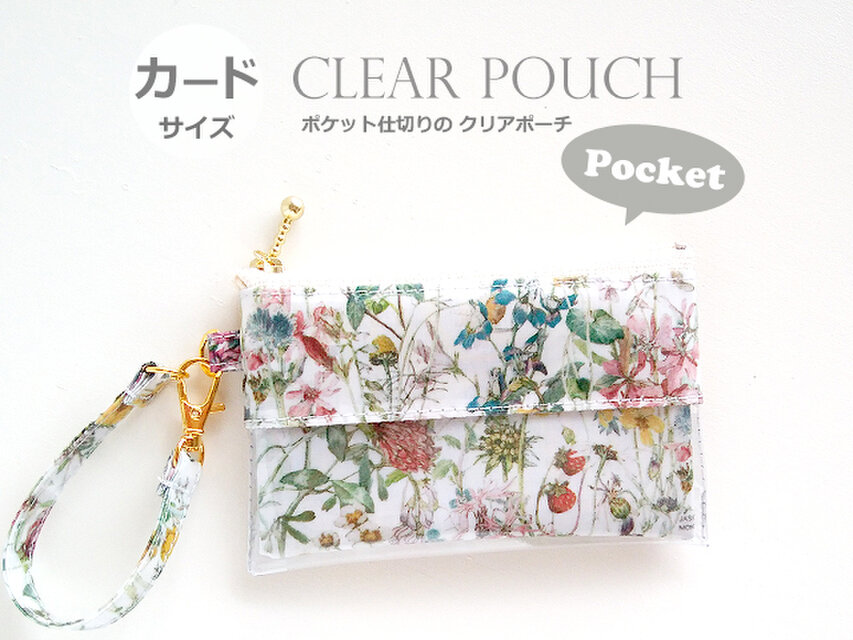 ポケット仕切りのクリアポーチ カードサイズ リバティ ワイルドフラワーズ ホワイト