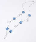 リーフ形のメタルパーツとの組み合わせで、花のようにも見える星モチーフのネックレスです。