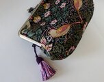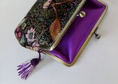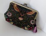 ウイリアムモリスの人気柄 いちご泥棒(ブラック)で作りましたがま口ふっくらポーチです
