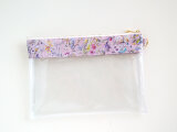 リバティの人気生地(ラミネート つや無)、 ワイルドフラワーズ Wild Flowers(ピンク)で中身が見えるクリアポーチを作りました。
