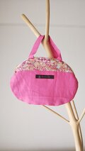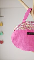 チェック&ストライプのやさしいリネン(スイートピー)で作ったバックです。